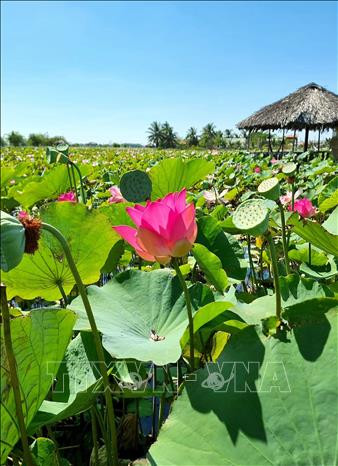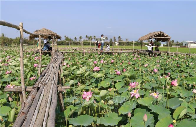Mô hình du lịch sinh thái làng sen của đồng bào Chăm (thị trấn Phước Dân, huyện Ninh Phước). Ảnh: TTXVN phát