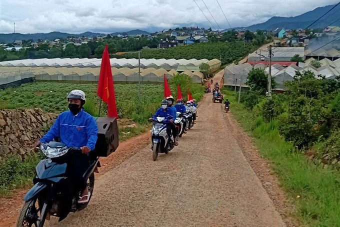 Các nội dung về bầu cử được tuyên truyền lưu động tại các xã vùng sâu, vùng xa, vùng DTTS huyện Lạc Dương bằng xe máy chở loa kéo. Ảnh: baolamdong.vn
