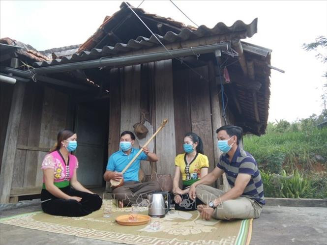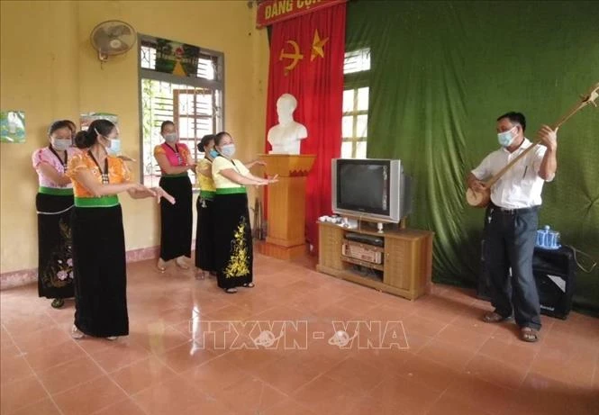 Đồng bào Thái trắng huyện Mai Sơn giữ gìn các bản sắc văn hóa truyền thống tốt đẹp của dân tộc mình, nhất là cách chơi đàn tính tẩu khi hát và múa xòe. Ảnh: TTXVN