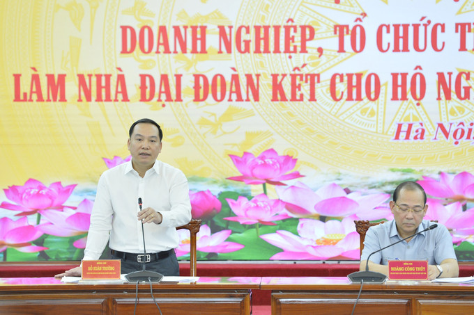 Phó Chủ tịch Ủy ban Trung ương Mặt trận Tổ quốc Việt Nam Hoàng Công Thủy và Phó Bí thư Đảng ủy khối Doanh nghiệp Trung ương Hồ Xuân Trường chủ trì cuộc gặp mặt.