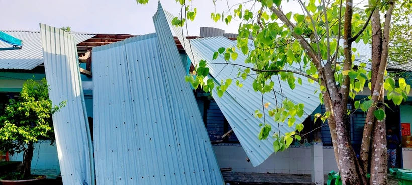 Dông lốc làm sập và tốc mái nhiều ngôi nhà ở huyện Tịnh Biên (An Giang). Ảnh: baoangiang.com.vn