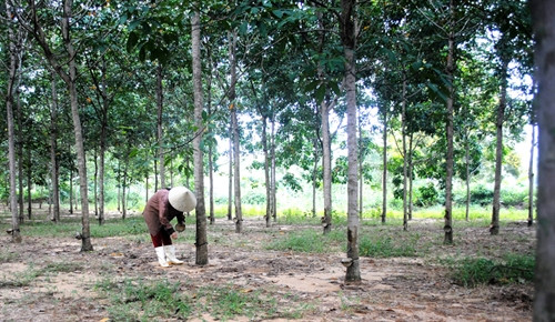 | Gia đình ông Đặng Xuân Tân ở thôn Tiền Tiến, xã Quảng Châu, huyện Quảng Trạch vay 50 triệu đồng đầu tư vào mô hình kinh tế tổng hợp VAC là trồng rừng keo, cao su, nuôi ong, vịt, ngan với diện tích trên 6ha |