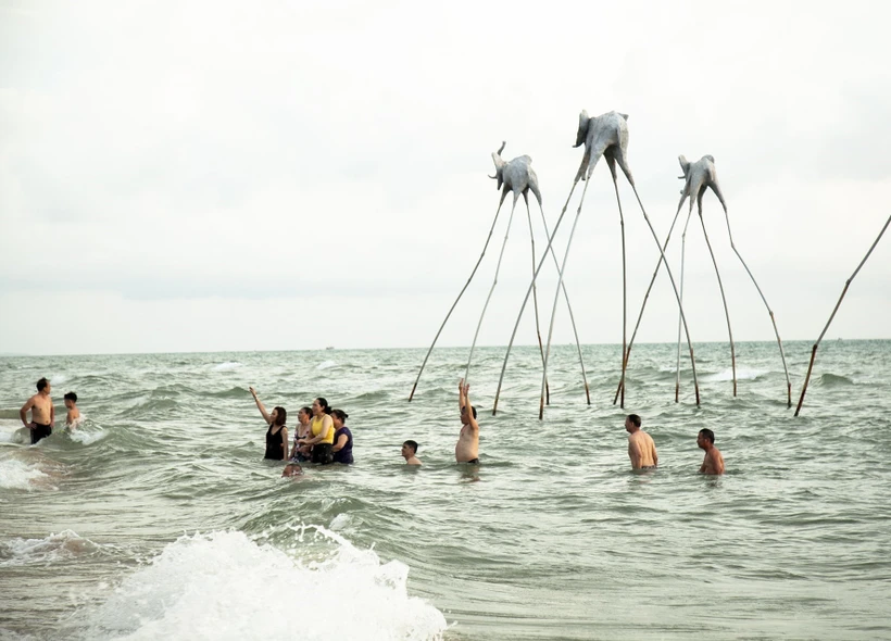Du khách vui chơi, tắm biển tại Bãi Trường, thành phố Phú Quốc (Kiên Giang). Ảnh: Hồng Đạt - TTXVN