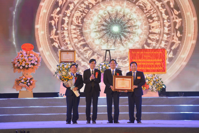 Chủ tịch UBND tỉnh Sơn La Hoàng Quốc Khánh tặng Bằng khen cho các cá nhân có thành tích xuất sắc trong phong trào thi đua chào mừng kỷ niệm 70 năm Ngày thành lập huyện Sông Mã. Ảnh: Quang Quyết – TTXVN