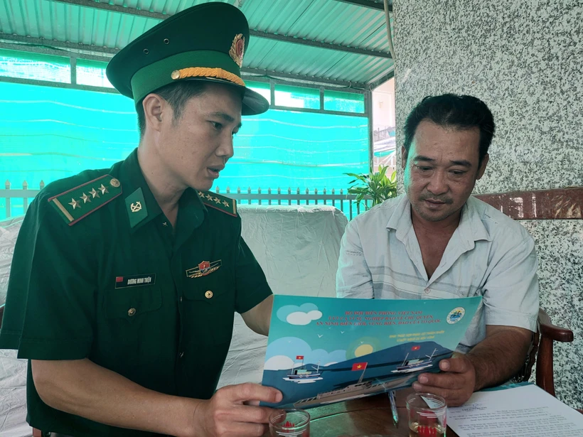 Đại úy Dương Minh Thiện cho biết thêm, đôi khi sau giờ làm việc chính là thời gian lý tưởng để anh và các chiến sĩ Biên phòng đến nhà, gặp trực tiếp thuyền trưởng, chủ tàu trò chuyện, nắm bắt tâm tư của họ. Từ đó lồng ghép nội dung tuyên truyền giúp người dân nhớ lâu hơn.