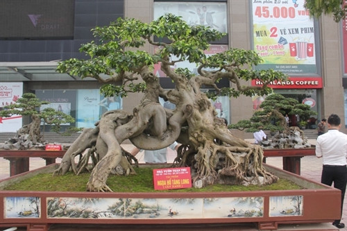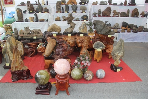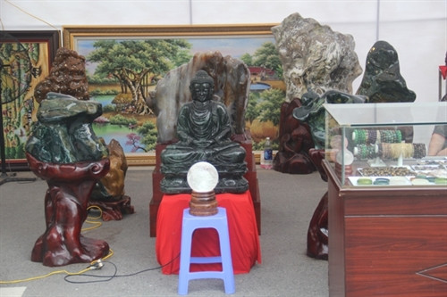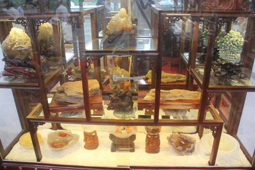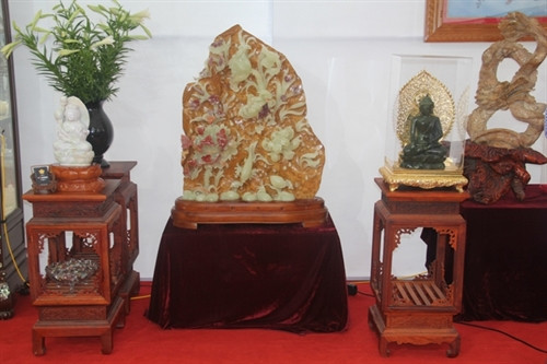 | Tác phẩm đào thế (dáng long) được làm bằng nhiều loại đá quý. |