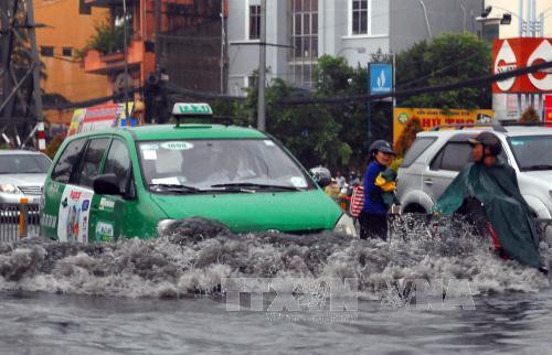 Mưa lớn ngập nhiều tuyến đường tại thành phố Pleiku. Ảnh: TTXVN