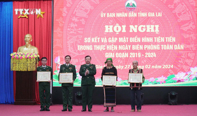 Nhân dịp này, Bộ Tư lệnh Bộ đội Biên phòng, Ủy ban nhân dân tỉnh và Bộ Chỉ huy Bộ đội Biên phòng tỉnh Gia Lai quyết định tặng thưởng 21 tập thể và 46 cá nhân có thành tích xuất sắc, tiêu biểu trong tham gia thực hiện “Ngày Biên phòng toàn dân” và tham gia xây dựng khu vực biên giới vững mạnh giai đoạn 2019 – 2024; trao kỷ niệm chương “Vì chủ quyền an ninh biên giới tổ quốc” của Bộ đội Biên phòng cho 6 cá nhân.