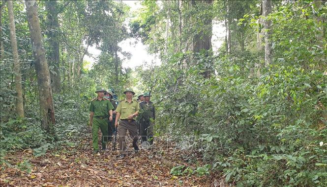 Ban chỉ đạo Quản lý bảo vệ rừng tại cơ sở thường xuyên tuần tra, kiểm soát những khu vực trọng yếu. Ảnh: Hồng Điệp – TTXVN