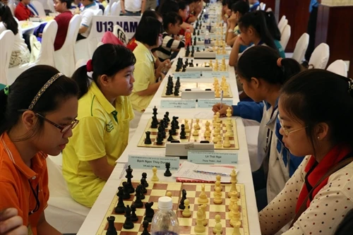| Các vận động viên thi đấu tại giải Cờ vua trẻ xuất sắc toàn quốc năm 2015. |