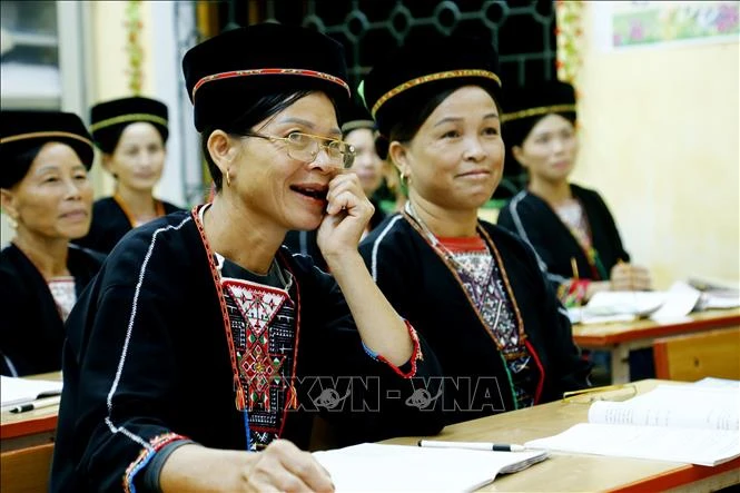 Lớp học xóa mù chữ ở xã Minh Dân, Hàm Yên (tỉnh Tuyên Quang). Ảnh: Nam Sương - TTXVN