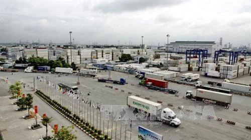 | Hoạt động vận chuyển hàng hóa tại Tân Cảng Sài Gòn. Ảnh: Thế Anh - TTXVN |