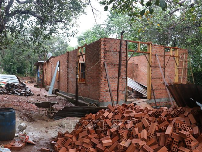 Gia đình chị Điểu Thị Rế (dân tộc S’Tiêng, thôn 9, xã biên giới Đắc Ơ, huyện Bù Gia Mập, tỉnh Bình Phước) được nhà nước hỗ trợ xây nhà mới. Ảnh: Sỹ Tuyên – TTXVN