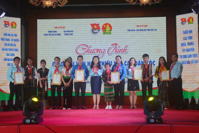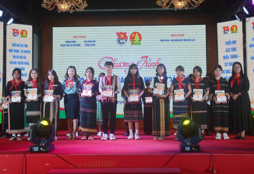 Dịp này, Trung ương Đoàn tặng công trình sân thể thao cộng đồng trị giá 150 triệu đồng và nhà Khăn quàng đỏ trị giá 80 triệu đồng cho tỉnh Đắk Lắk; tặng 50 suất học bổng Vừ A Dính (1 triệu đồng/suất) cho 50 thiếu nhi dân tộc thiểu số khu vực miền Trung - Tây Nguyên. Đại diện Hội đồng Đội Buôn Ma Thuột giới thiệu, chia sẻ mô hình “Thanh thiếu nhi thành phố Buôn Ma Thuột gìn giữ và phát huy bản sắc văn hóa cồng chiêng”. Các đại biểu cùng hơn 200 thiếu nhi đã hòa mình vào các tiết mục nghệ thuật mang đậm bản sắc văn hóa dân tộc.