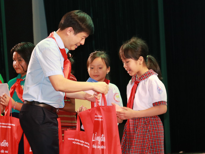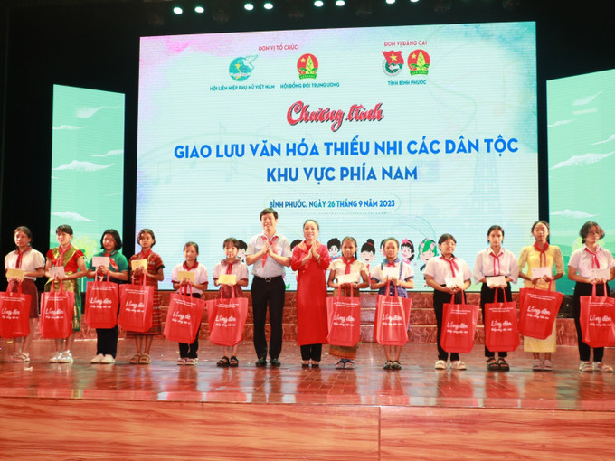 Bên cạnh đó, Trung ương Hội Liên hiệp Phụ nữ Việt Nam và Hội đồng Đội Trung ương dành tặng 100 suất quà, học bổng mỗi suất gồm 1 triệu đồng tiền mặt và phần dụng cụ học tập cho 100 bạn thiếu nhi dân tộc thiểu số của 7 tỉnh khu vực phía Nam.
