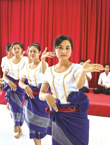 | Sinh viên của khoa được học những điệu múa truyền thống của dân tộc Khmer |