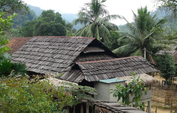 Mái nhà sàn lợp bằng gỗ Pơ mu trong bản Na Ngân, xã Nga My (Tương Dương, Nghệ An). Ảnh: Xuân Tiến – TTXVN