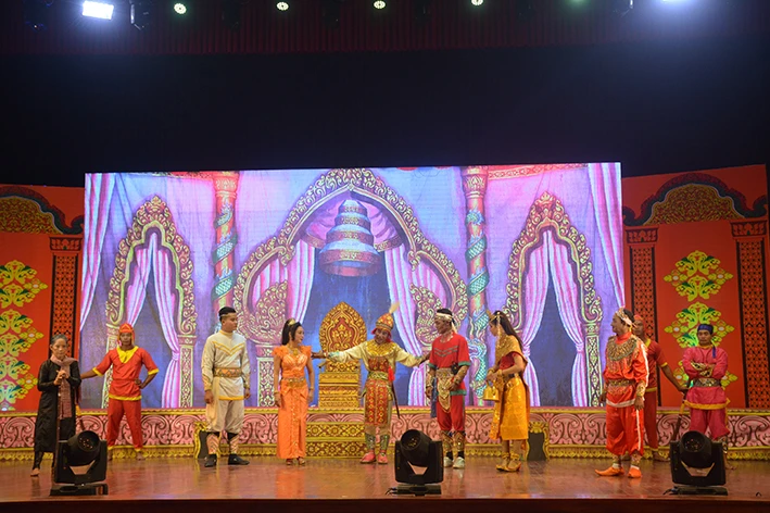 Tại Liên hoan nghệ thuật sân khấu dù kê năm 2020 của tỉnh Sóc Trăng, Đoàn dù kê Ron Ron đã giành giải A với trích đoạn vở diễn “Nàng So-bay Meas". Ảnh: Trung Hiếu