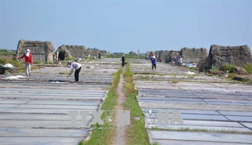 | Sản xuất muối ở xã Bạch Long, huyện Giao Thủy. Ảnh Công Luật-TTXVN |