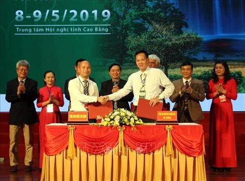| Đại diện Ban quản lý Công viên địa chất toàn cầu UNESSCO Non nước Cao Bằng ký kết hợp tác phát triển với đại diện Công viên địa chất toàn cầu cao nguyên đá Đồng Văn (Hà Giang). Ảnh: Quốc Đạt – TTXVN |