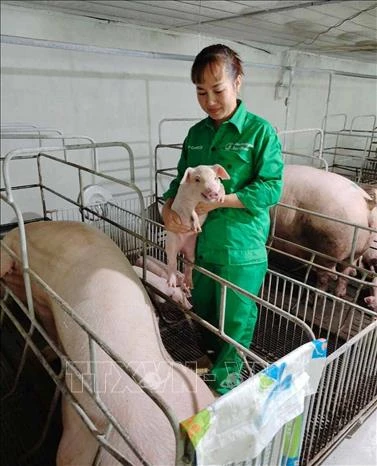 Trang trại chăn nuôi theo mô hình VietGap của chị Nguyễn Thị Thúy, mỗi năm bán ra thị trường hơn 1.000 con lợn thịt và hơn 400 con lợn giống. Ảnh: Nguyễn Thảo – TTXVN