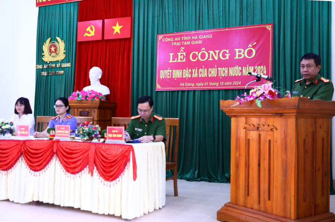 Nhân dịp kỷ niệm 79 năm Quốc khánh nước Cộng hòa Xã hội Chủ nghĩa Việt Nam (2.9.1945 - 2.9.2024), 70 năm Ngày Giải phóng Thủ đô (10.10.1954 - 10.10.2024), cùng với các địa phương khác trong cả nước, ngày 1/10 Trại tạm giam Công an tỉnh Hà Giang đã tổ chức lễ công bố quyết định đặc xá năm 2024 của Chủ tịch nước cho 4 phạm nhân có thành tích tốt trong quá trình lao động cải tạo.