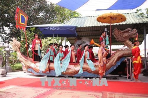 Diễn xướng hát Chèo tàu tại xã Tân Hội, huyện Đan Phượng, Hà Nội. Ảnh: Đinh Thuận - TTXVN