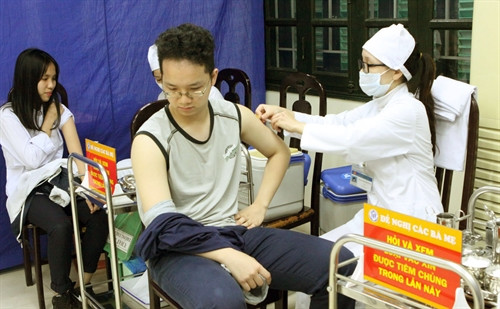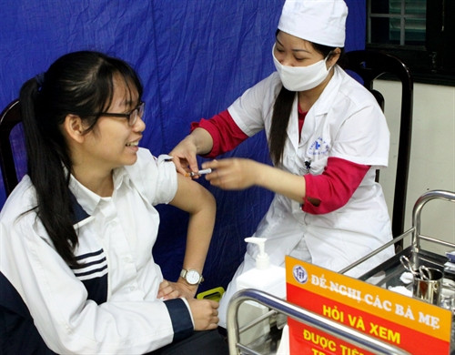 Nhóm ảnh: Quận Hai Bà Trưng triển khai Chiến dịch tiêm vắc xin Sởi – Rubella miễn phí cho hơn 4.500 học sinh 16 - 17 tuổi tại 9 trường THPT; quy trình tiêm đảm bảo điều kiện an toàn như tuyên truyền, tư vấn, khám sàng lọc, giám sát, phát hiện sớm, chuẩn bị đầy đủ thuốc, vật tư y tế để xử lý kịp thời nếu có tai biến sau tiêm chủng.