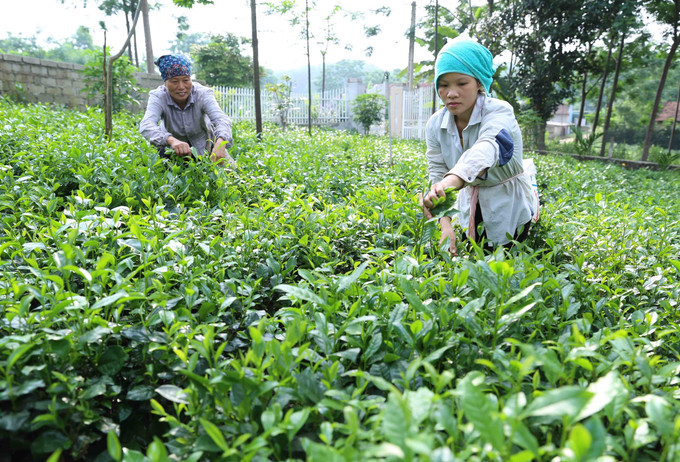 Mô hình sản xuất chè chất lượng cao theo tiêu chí nông thôn mới của hộ nông dân Bùi Văn Sách ở thôn 3, xã Ba Trại, huyện Ba Vì (Hà Nội). Ảnh: Vũ Sinh