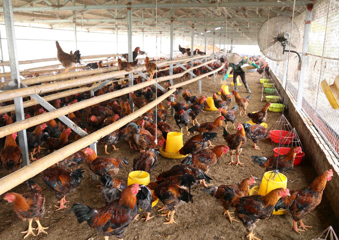 Những năm vừa qua, huyện Ba Vì (Hà Nội) phát triển chăn nuôi gà đồi theo hướng chất lượng cao gắn với xây dựng thương hiệu gà đồi Ba Vì. Ảnh: Vũ Sinh