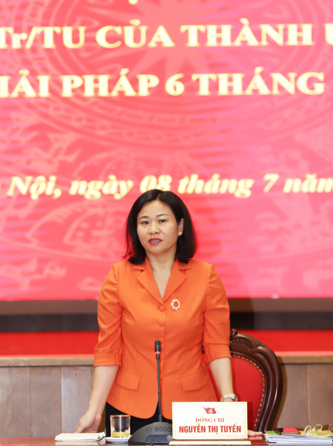 Ủy viên Trung ương Đảng, Phó Bí thư Thường trực Thành ủy Hà Nội, Trưởng ban Chỉ đạo Chương trình số 04-CTr/TU Nguyễn Thị Tuyến phát biểu kết luận hội nghị.