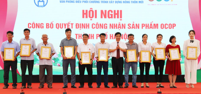Ông Nguyễn Văn Chí, Phó Chánh Văn phòng Thường trực Văn phòng Điều phối chương trình xây dựng nông thôn mới thành phố Hà Nội trao quyết định công nhận sản phẩm OCOP của thành phố Hà Nội năm 2021.