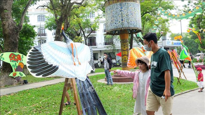 Du khách tham quan không gian trưng bày diều truyền thống. Ảnh: Tường Vi - TTXVN