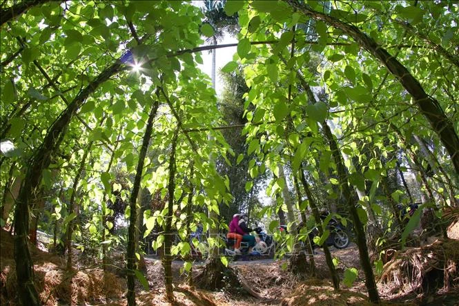 Thu hoạch lá trầu tại làng trầu Vị Thủy. Ảnh: Duy Khương - TTXVN