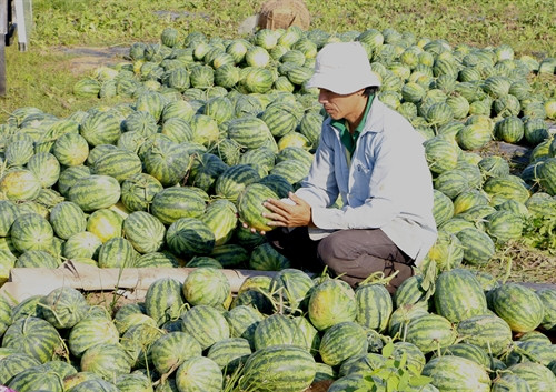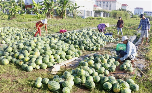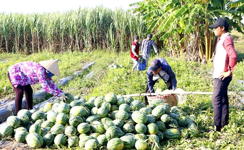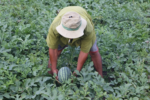 Một số hình ảnh về người nông dân Hậu Giang thu hoạch dưa hấu bán cho thương lái.