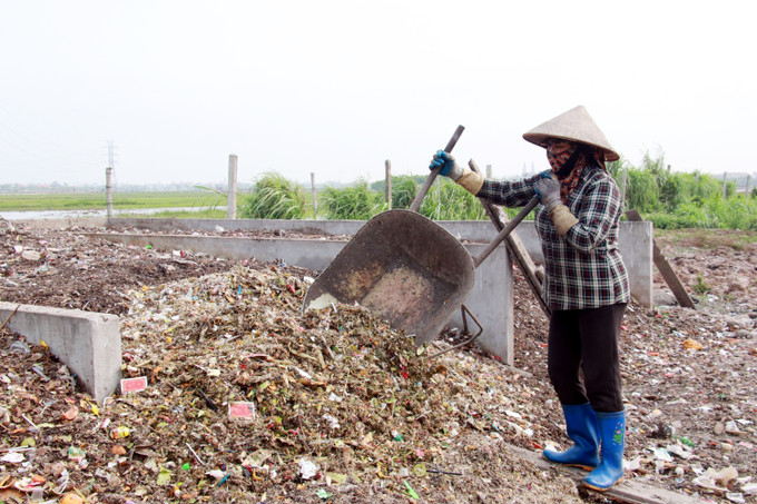Xử lý rác thải hữu cơ làm phân bón tại xã Thọ Nghiệp (Xuân Trường, Nam Định). Ảnh: Nguyễn Lành – TTXVN