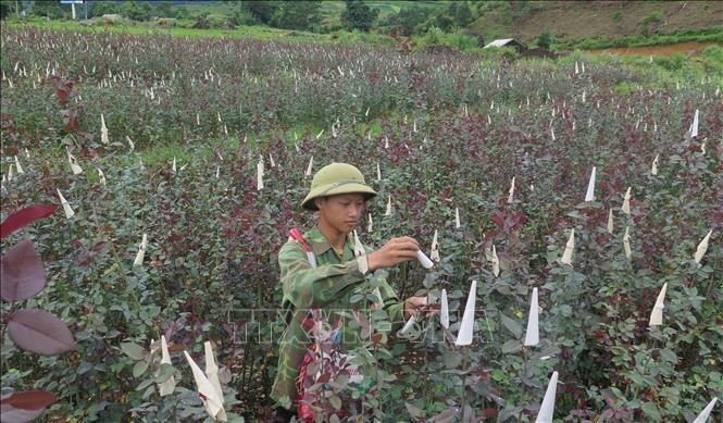 Mô hình trồng hoa hồng của nông dân Lai Châu cho hiệu quả kinh tế cao. Ảnh: Nguyễn Oanh-TTXVN