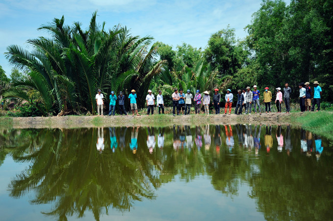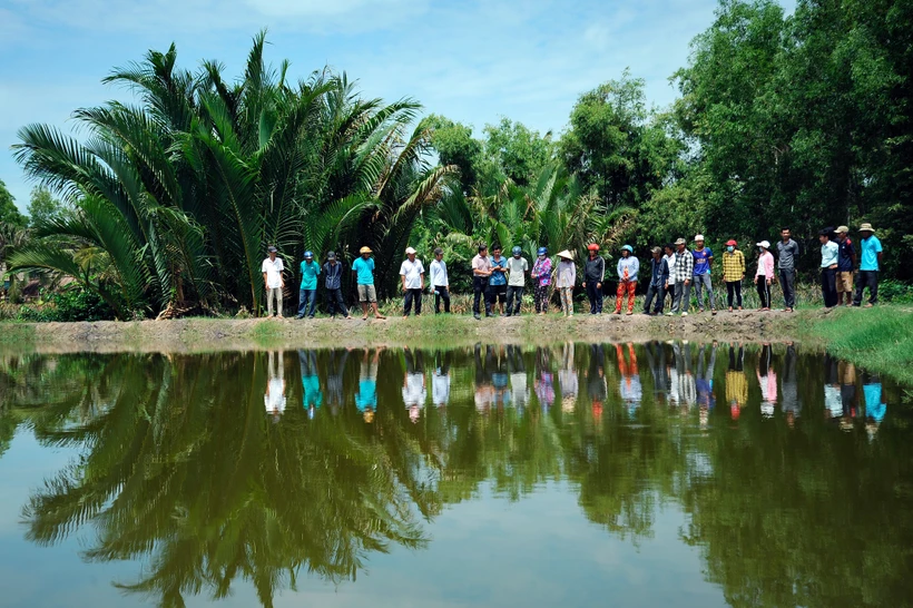 Tập huấn, chuyển giao kỹ thuật canh tác theo mô hình lúa - tôm cho bà con Khmer ở ấp Đồng Tranh (xã Vĩnh Bình Bắc, Vĩnh Thuận, Kiên Giang). Ảnh: An Hiếu