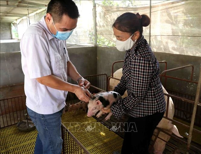 Hộ chăn nuôi lợn Lê Thị Tính, thị trấn An Lương, huyện Nam Sách, tái đàn lợn sau bệnh dịch tả lợn châu Phi theo quy định của ngành Nông nghiệp. Ảnh: Vũ Sinh - TTXVN