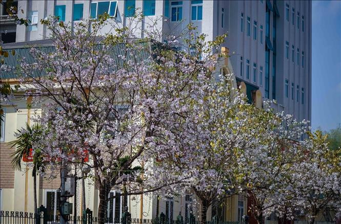 Hoa ban bung nở trên đường Hoàng Văn Thái, thành phố Điện Biên Phủ. Ảnh: Xuân Tư – TTXVN