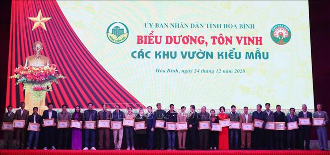 UBND tỉnh Hòa Bình khen thưởng các tập thể, cá nhân tiêu biểu trong thực hiện xây dựng khu vườn kiểu mẫu. Ảnh: Thanh Hải - TTXVN