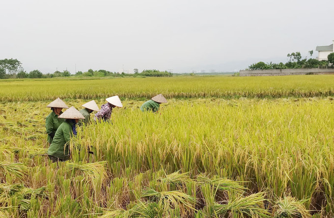 Nông dân xã Dân Chủ (TP Hòa Bình) tập trung thu hoạch lúa mùa để giải phóng đất cho sản xuất vụ sau. Nguồn: baohoabinh.com.vn