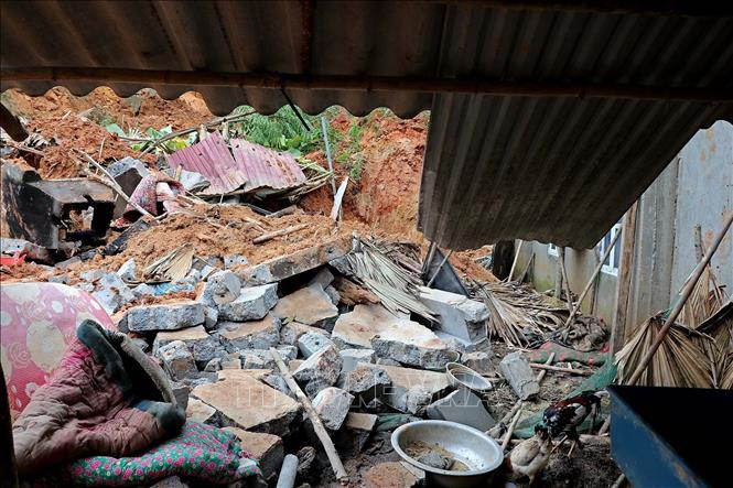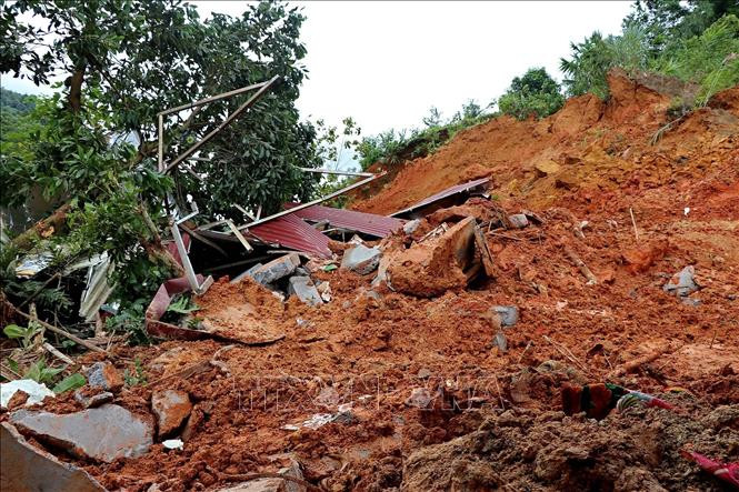 Cảnh tượng tang hoang sau vụ sạt lở đất. Ảnh: Thanh Hải – TTXVN