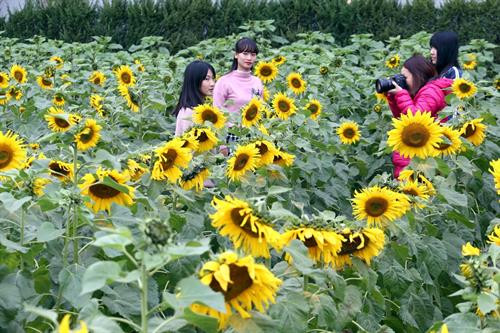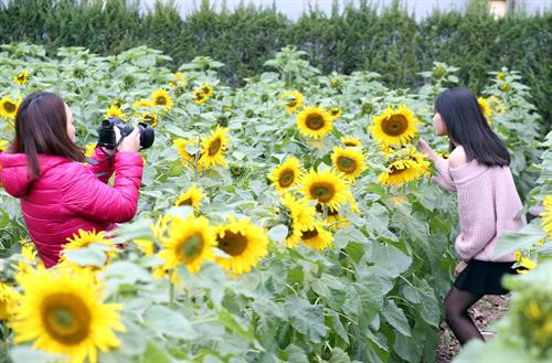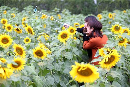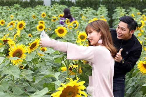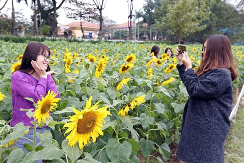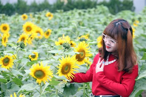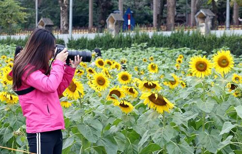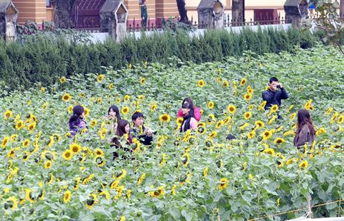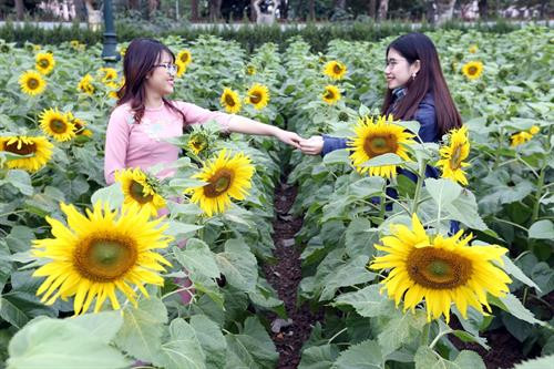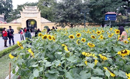 Một số hình ảnh: Hoa hướng dương khoe sắc ở Hoàng Thành đã thu hút được nhiều bạn trẻ Thủ đô đến chụp ảnh và ngắm hoa.