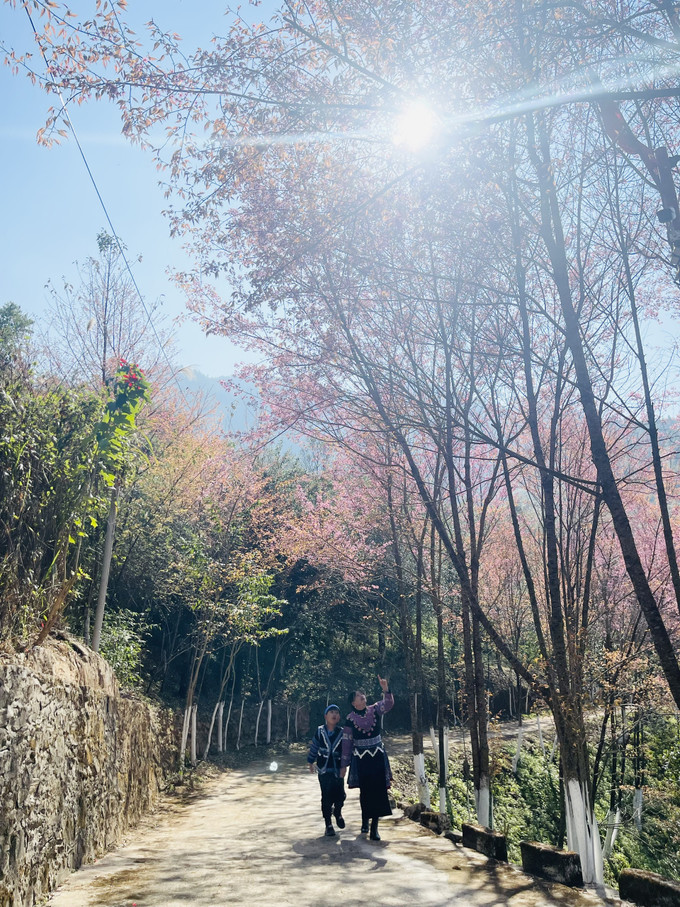 Những chùm hoa sắc đỏ hồng ở lưng chừng đồi tạo nên một bức tranh thiên nhiên tuyệt đẹp đã trở thành lợi thế về du lịch thu hút hấp dẫn du khách tham quan, trải nghiệm.