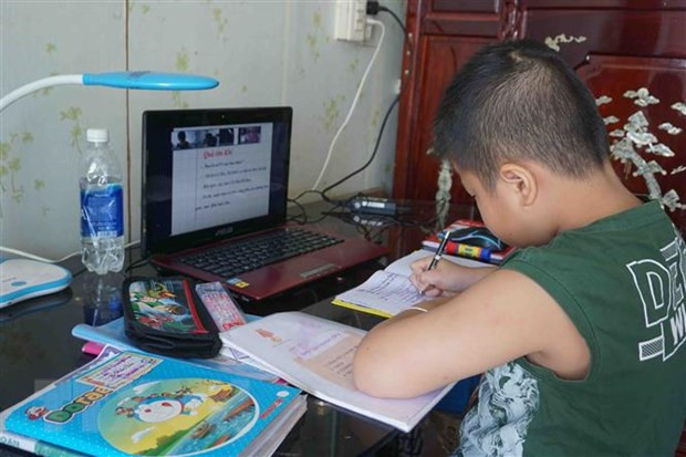 Học sinh TP.HCM trong giờ học trực tuyến môn Tiếng Việt. Ảnh: Thu Hoài/TTXVN