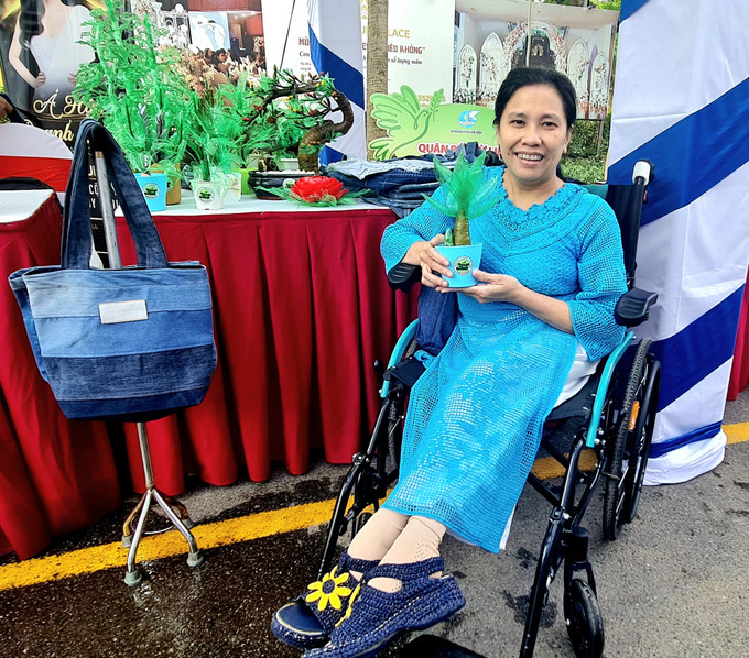Phó Chủ tịch Hội Liên hiệp Phụ nữ Việt Nam Trần Lan Phương tham quan gian hàng với sản phẩm của phụ nữ khởi nghiệp. Ảnh: Hoàng Tâm