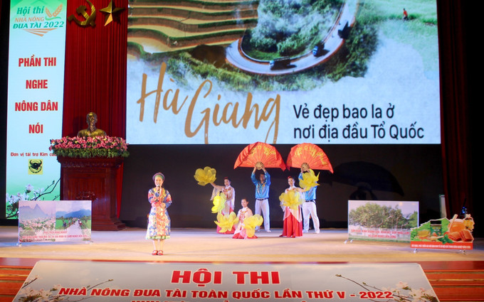Phần thi Nghe nông dân nói của đội thi tỉnh Hà Giang. Ảnh: Việt Hoàng