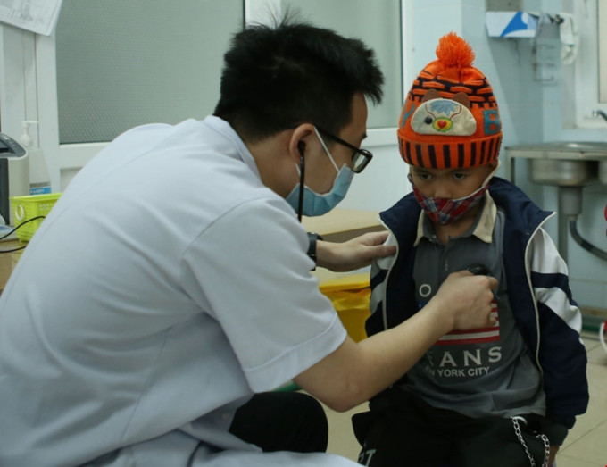 Bác sỹ Bệnh viện Tim Hà Nội khám sàng lọc bệnh tim bẩm sinh cho trẻ tại Bệnh viện Đa khoa tỉnh Lai Châu. Ảnh: Quý Trung – TTXVN