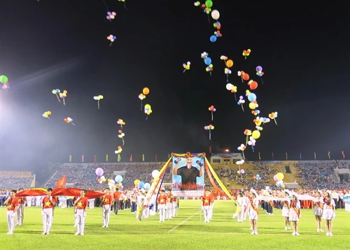 | Quang cảnh Lễ Khai mạc Hội khỏe Phù Đổng khu vực IV tại Bình Dương. Ảnh Hải Âu-TTXVN |